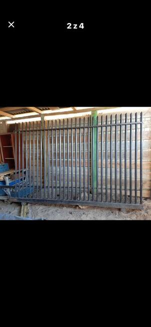 13Brama wykonana z profili stalowych , Szerokość wjazdu 4 m. Szerokość całkowita 6m. Wysokosć do 160 cm . Malowana na ...
